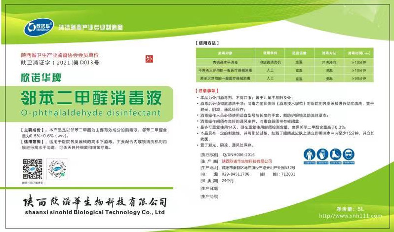 產(chǎn)品名稱:欣諾華牌鄰苯二甲醛消毒液 商標:欣諾華