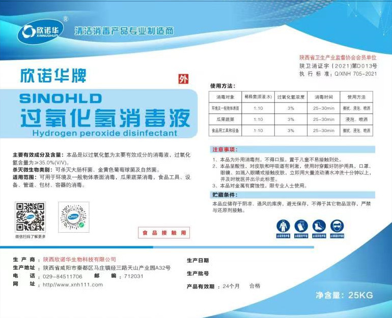 欣諾華牌過氧化氫消毒液是以過氧化氫為主要有效成分的液體消毒劑,有效成份含量為35%,可快速。徹底殺滅大腸桿菌,金黃色葡萄球菌。特別適合用于一般物體表面的消毒,食品用工具和設(shè)備的消毒。果汁廠,飲料廠,啤酒廠設(shè)備,容器,管道的殺菌消毒。