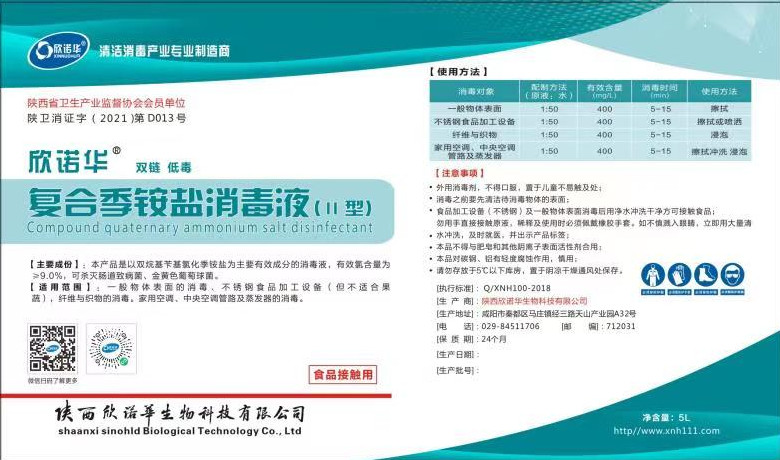 雙鏈季銨鹽消毒液欣諾華牌復(fù)合季銨鹽消毒液使用說明書