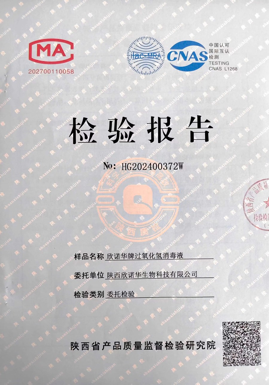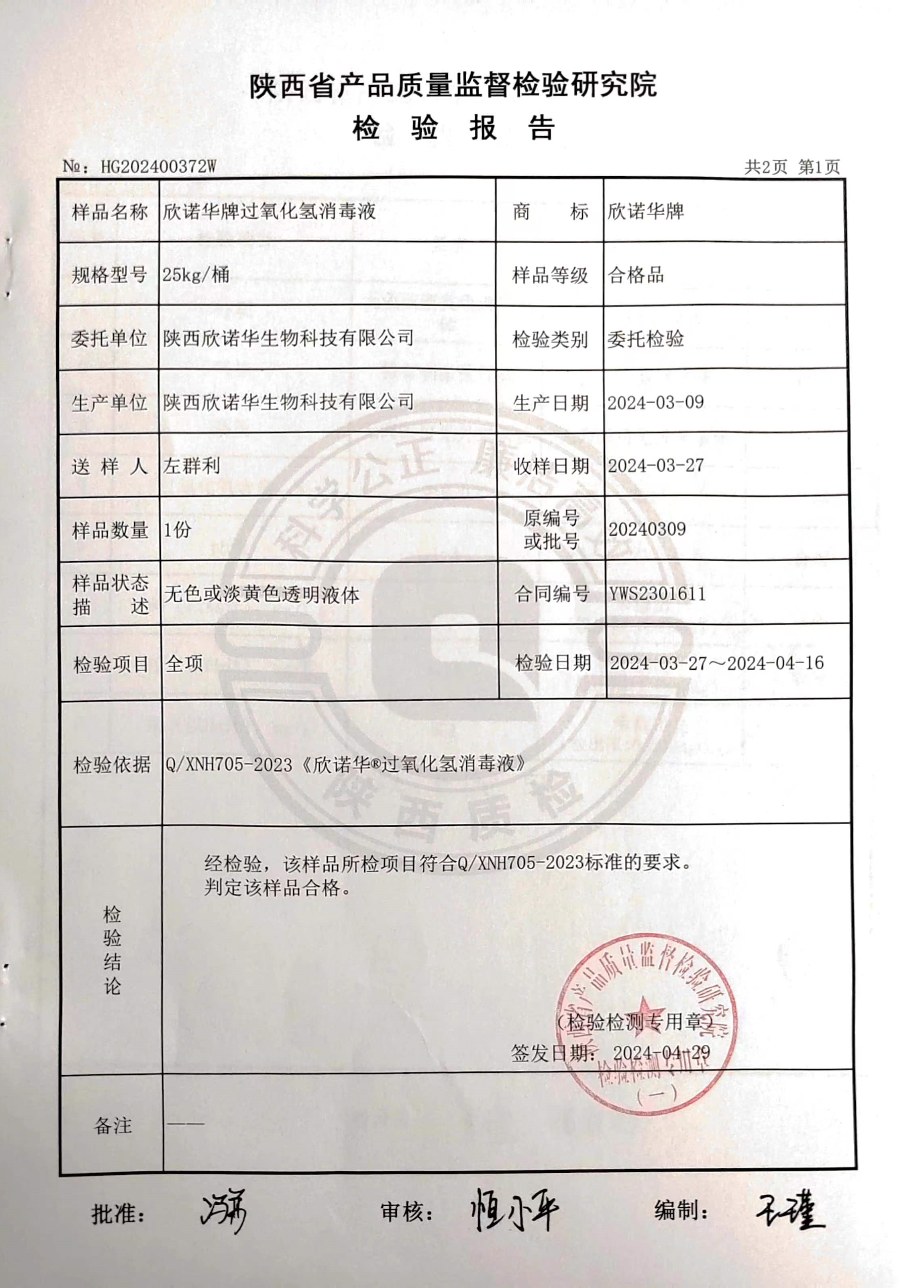 欣諾華牌過氧化氫消毒液(食品級雙氧水)檢測報告(2024年度)-陜西欣諾華生物科技有限公司