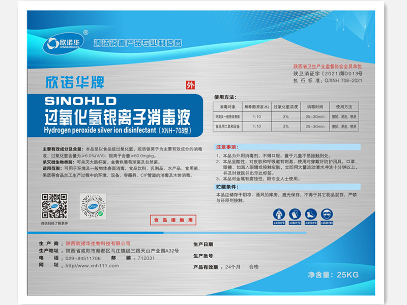 主要成分及含量: 本品是以過氧化氫、銀離子為主要有效成分的消毒液,產(chǎn)品分為過氧化氫含量≥35.0%;銀離子含量≥350mg/kg過氧化氫含量≥6.0%;銀離子含量≥60mg/kg兩種,??蓺缒c道致病菌、化膿性球菌。 使用范圍: 適用于環(huán)境及一般物體表面消毒;食品加工工具及設(shè)備消毒;食品飲料,乳制品,肉類,水產(chǎn)品,食用菌,果蔬,制藥廠,日化廠等加工生產(chǎn)過程中的環(huán)境,設(shè)備,容器具,CIP管道的消毒及水體消毒。也可以用于過氧化氫消毒機配套消毒液直接使用。 欣諾華牌過氧化氫銀離子消毒液是多組分復(fù)合殺菌劑,使用的氧化劑為食品級過氧化氫,膠質(zhì)銀離子,穩(wěn)定劑經(jīng)科學(xué)配比而成的復(fù)合消毒液,利用過氧化氫的活性和銀離子銀離子持久抑菌的效用。互相增效促進(jìn)起到高效的殺菌與消毒作用, 本品經(jīng)第三方檢測后證實,產(chǎn)品具有無色無味澄清透明的液體。欣諾華牌過氧化氫銀離子消毒液沒有產(chǎn)生任何消毒副產(chǎn)物或其它有毒物質(zhì),其作用后完全分解為氧氣和水。 |